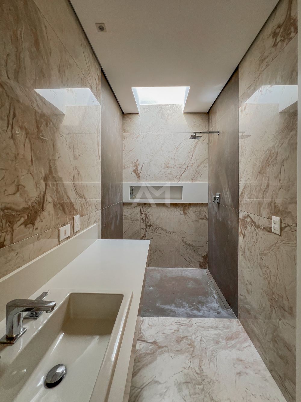 • 4 suítes com closet, banheiro e terraço, sendo 1 suíte master; • Sala de TV/ estar; • Suítes e closets em piso de madeira maciça Tauari Caramel; • Entrada com pé-direito duplo; • Lavabo; • Home office; • Despensa; • Cozinha; • Living e sala de jantar; • Área gourmet com varanda externa coberta e deck (95mts); • Piscina com prainha e borda infinita; • Banheiro/vestiário; • Esquadrias piso-teto, em alumínio na cor preta; • Lareira interna e externa; Ligue e Agende uma Visita1