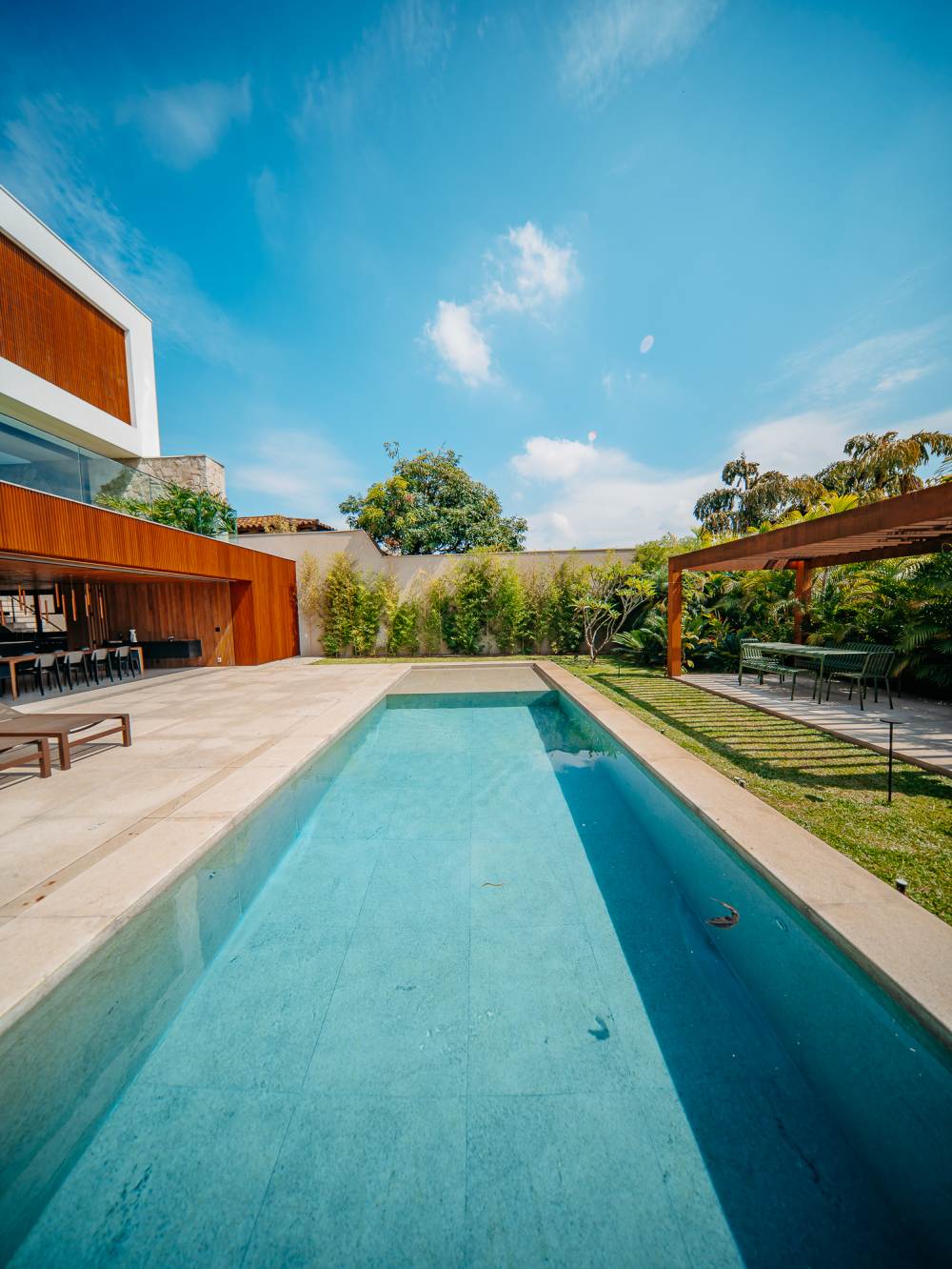 Piscina com prainha de 35m², aquecimento solar e a gás