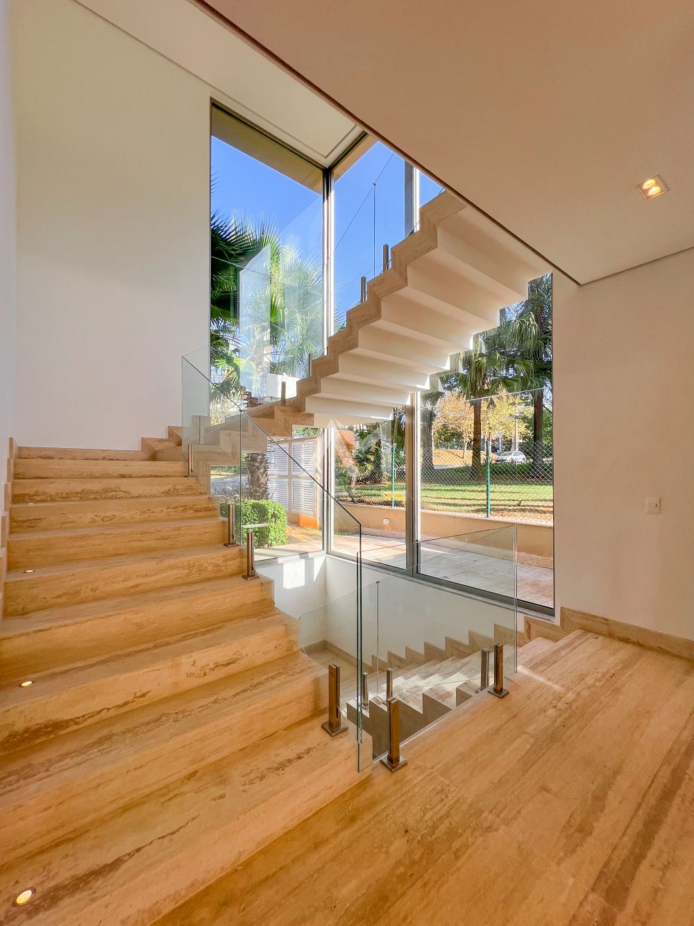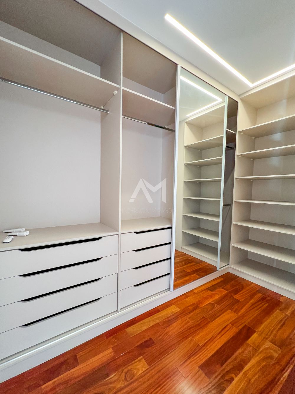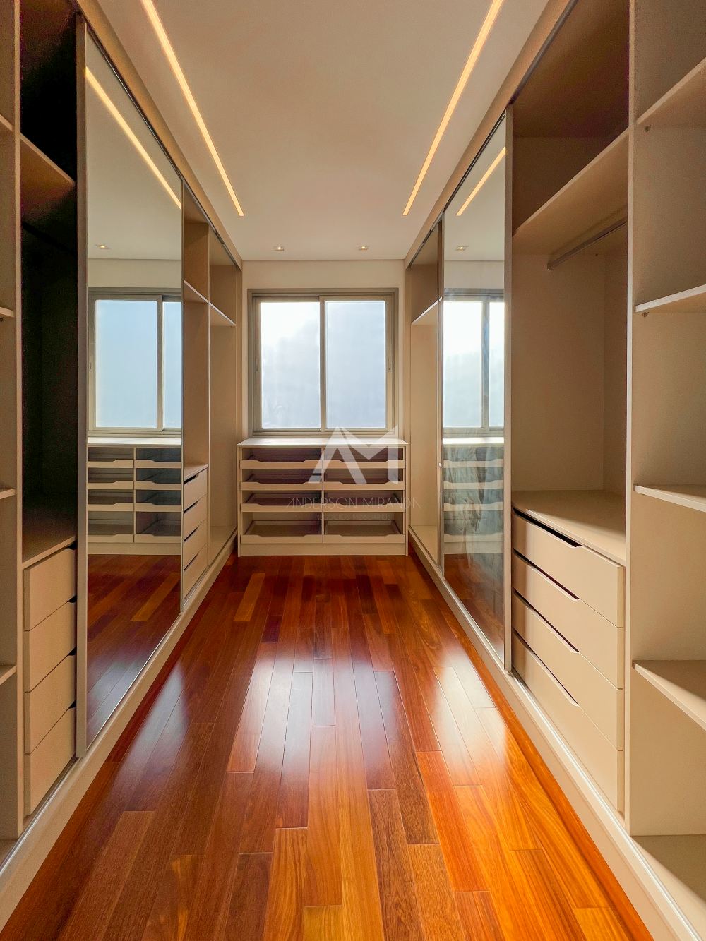 São 3 pavimentos servidos por Elevador, 4 suítes sendo 1 master com Hidro Pretty Jet automatizada, bancada em quartzo Branco, Closet Sr. e Sra. com sala íntima e Banheiros com metais Deca, repletos de Armários.