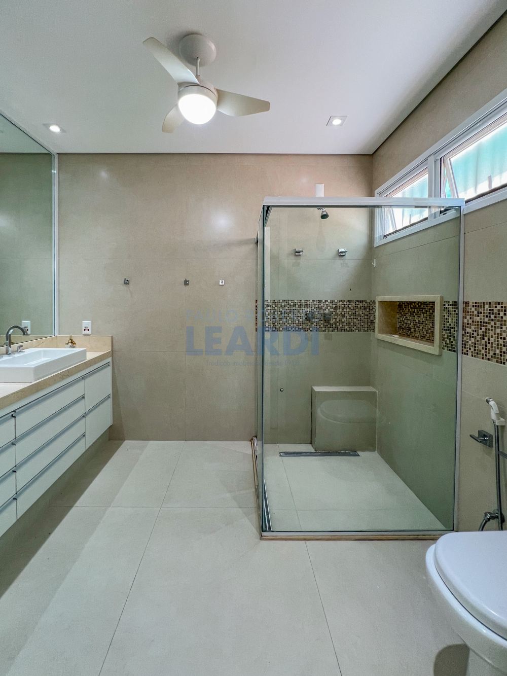 04 amplas suítes sendo 01 no piso térreo com closet e ar condicionado.