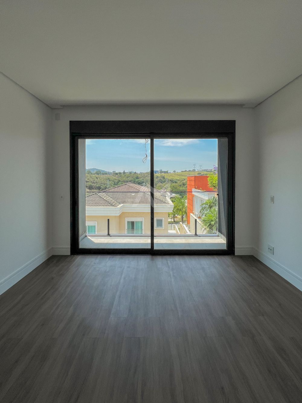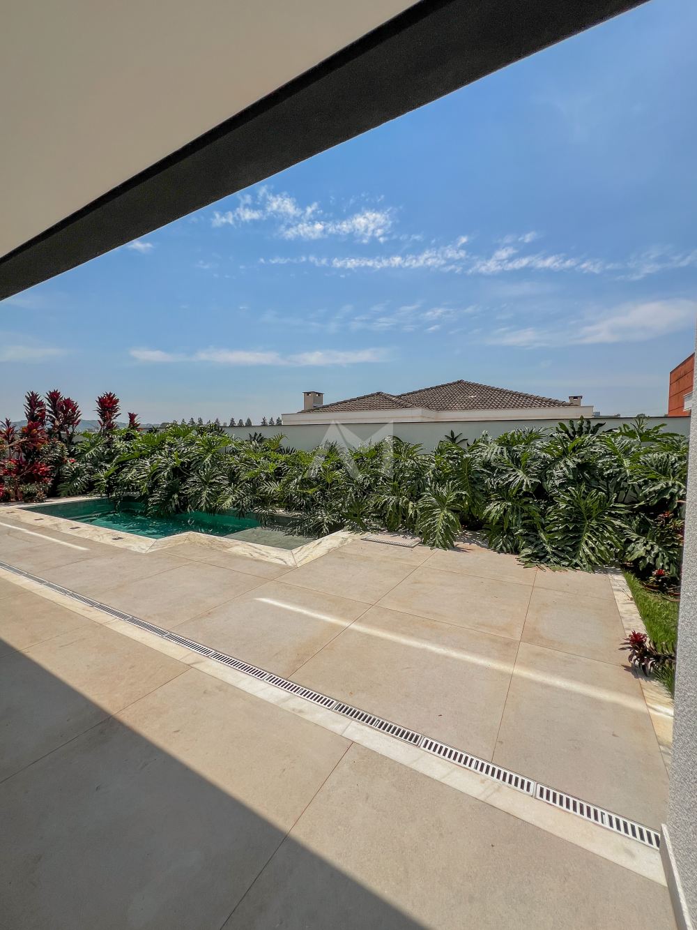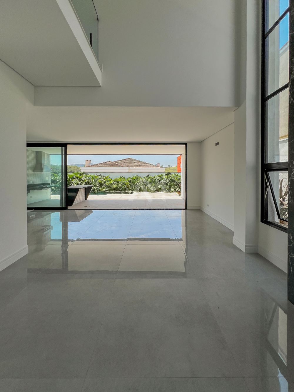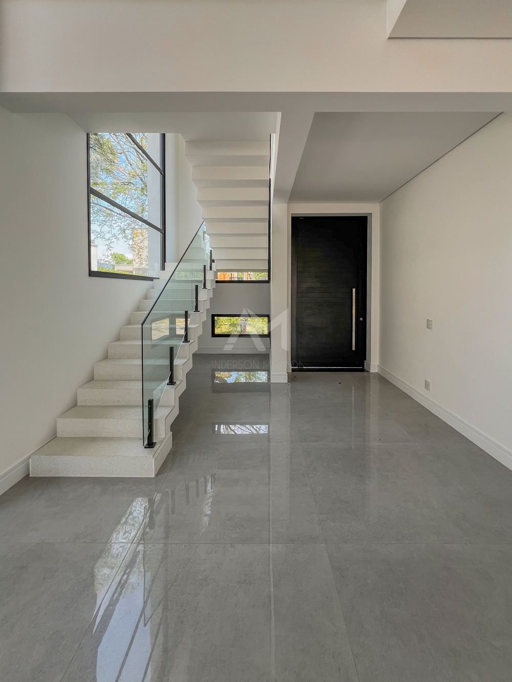 O pé direito duplo e as esquadrias automatizadas enriquecem o design. A casa está preparada para energia fotovoltaica e possui sistema de energia solar, alinhando luxo com sustentabilidade.