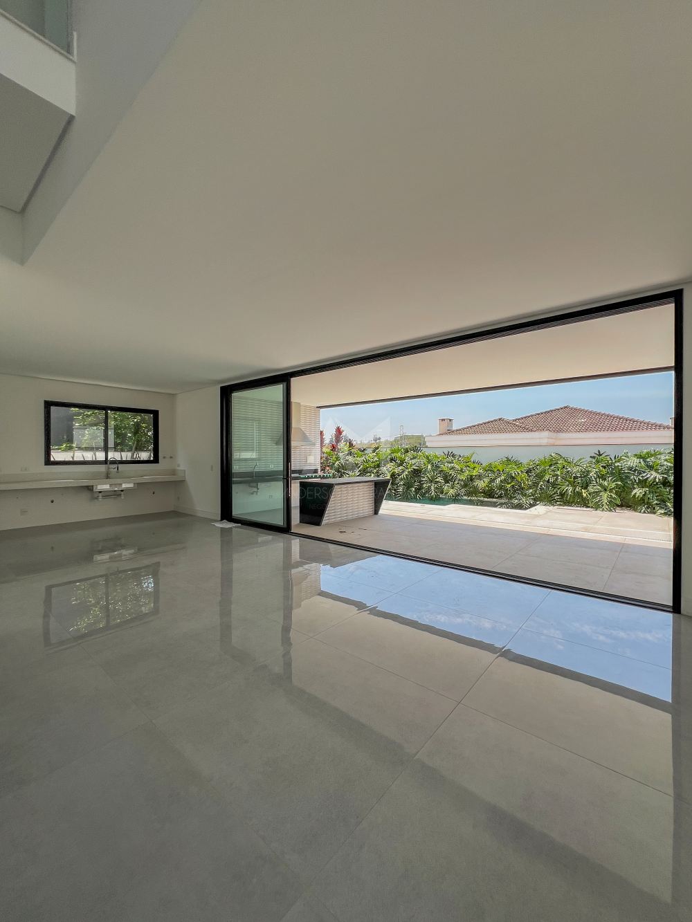 O living é espaçoso, dividido em salas de TV, estar e jantar, e se integra a uma ampla cozinha, bela área gourmet com churrasqueira a carvão e prainha com bordas em mármore.