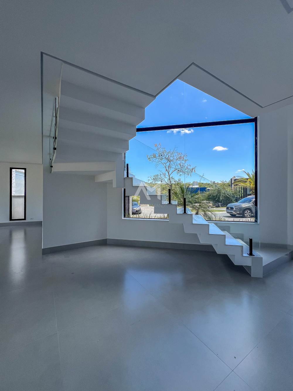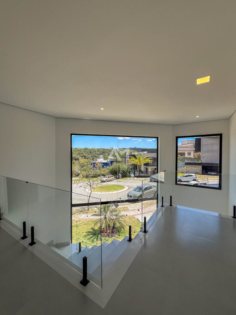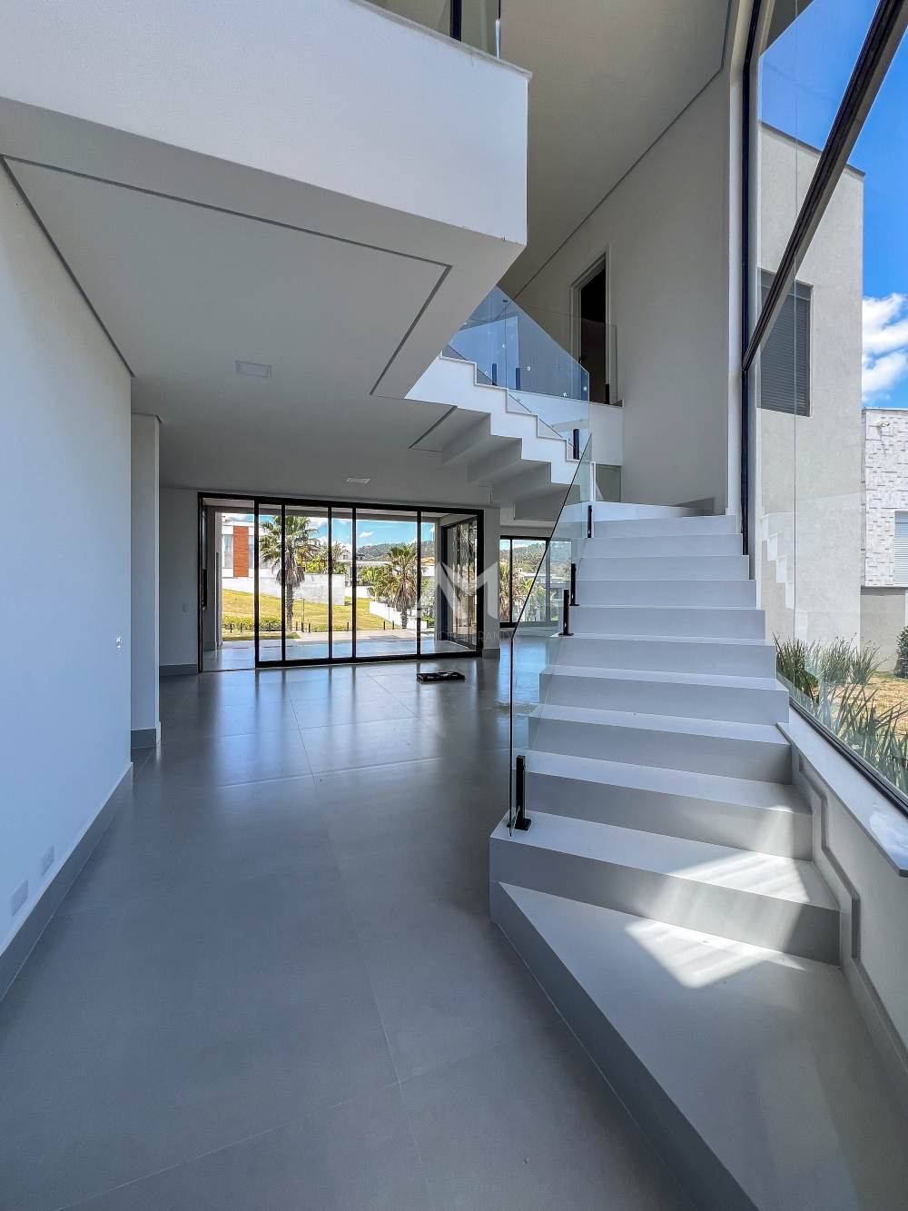 ✅ Escada em quartzo branco e guarda-corpos em vidro