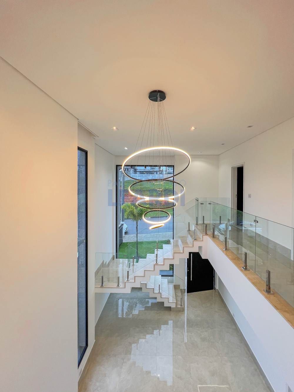 Living integrado (pé direto duplo) com sala de estar, sala de jantar, cozinha e área gourmet;