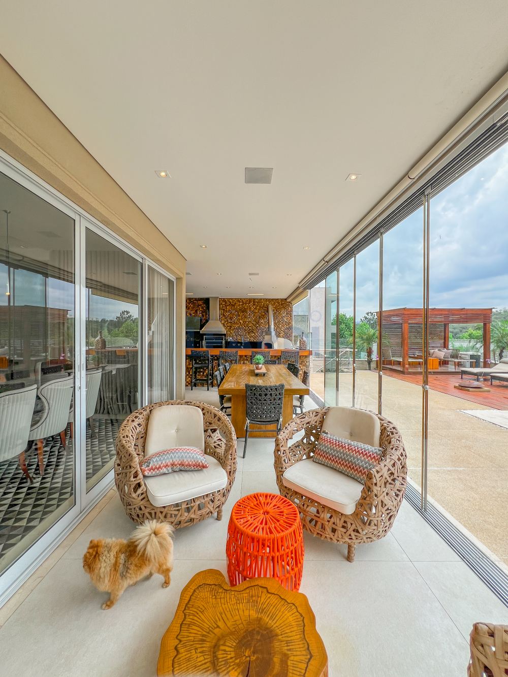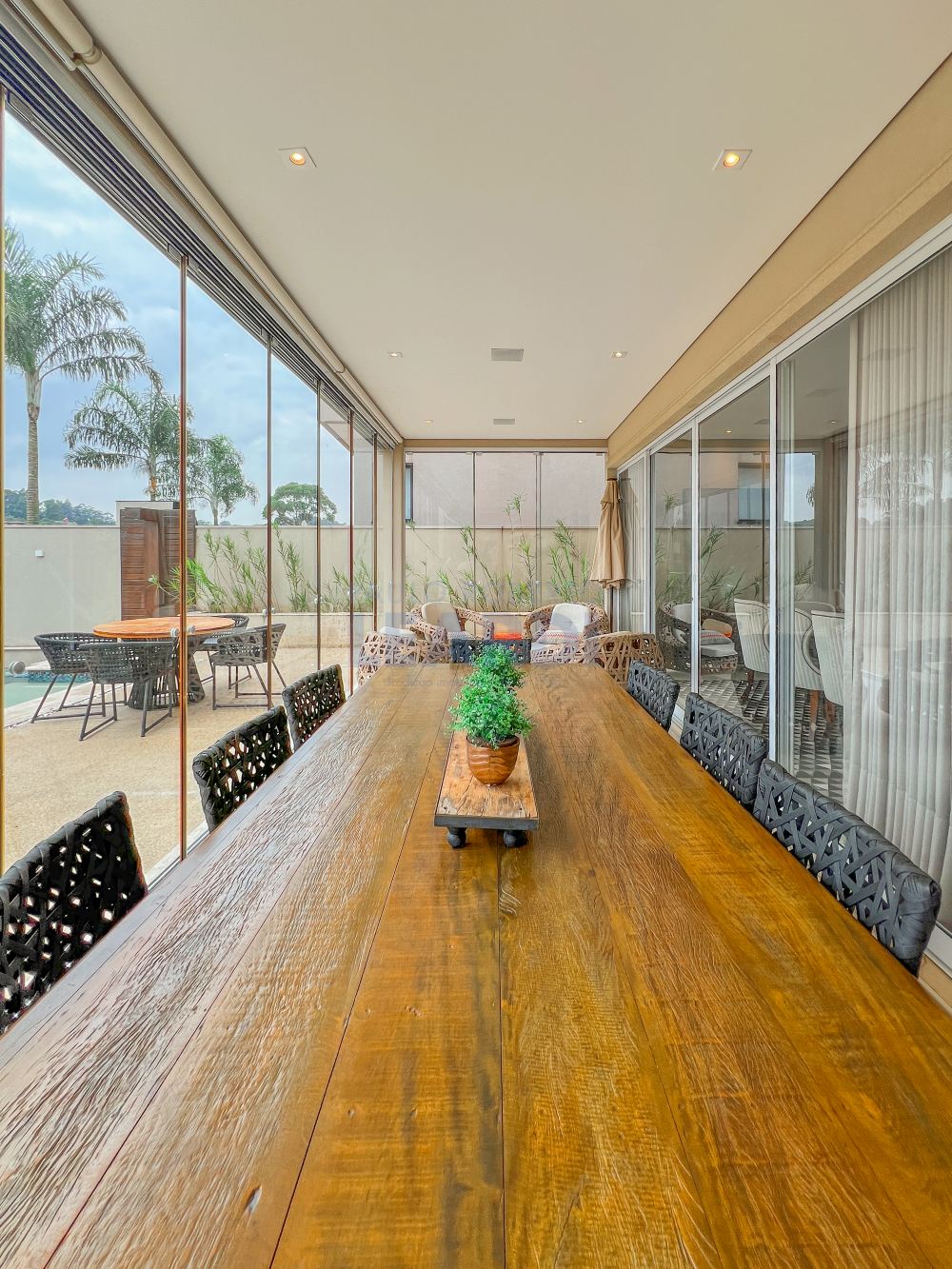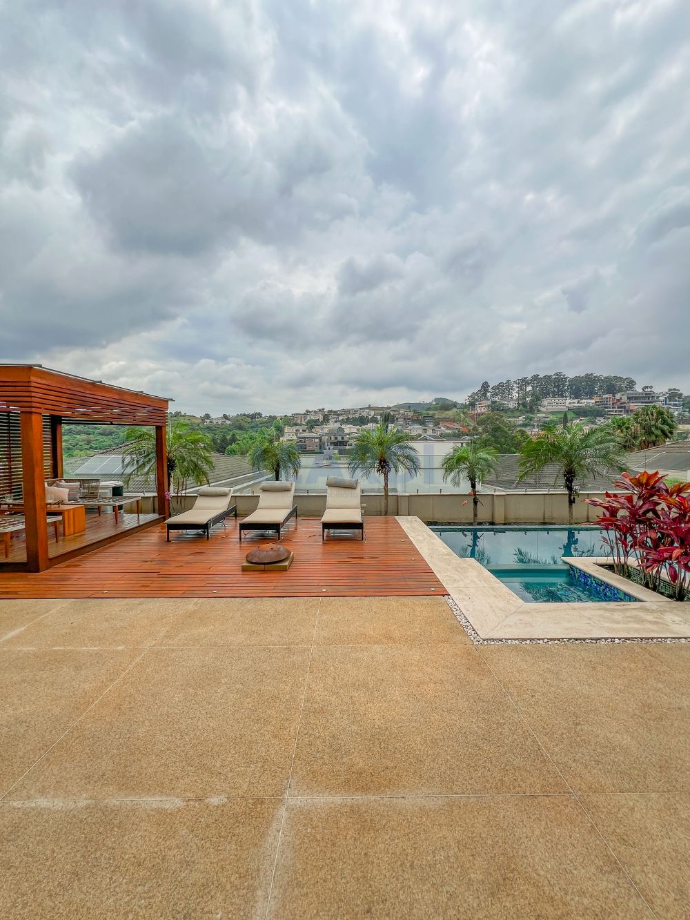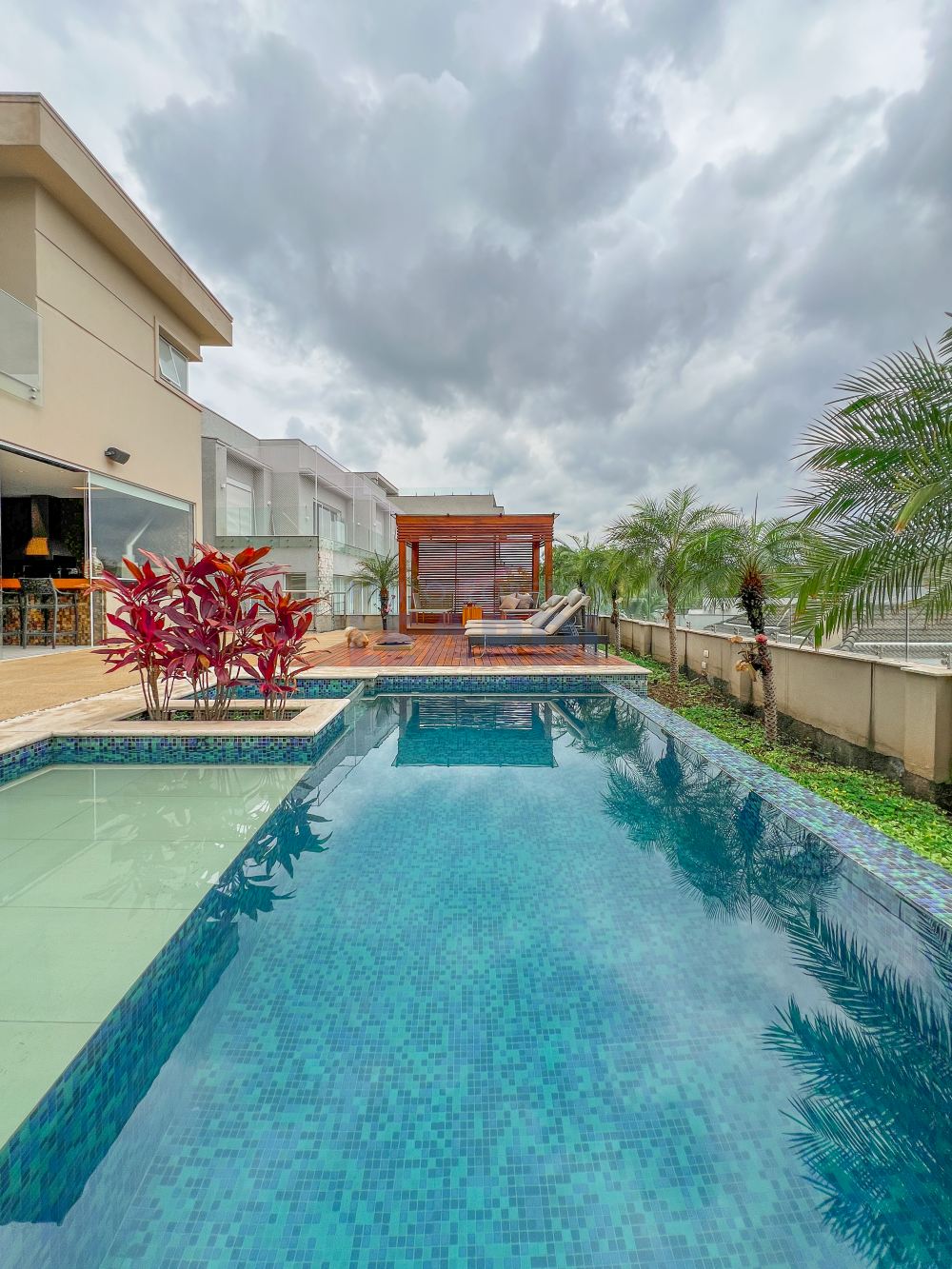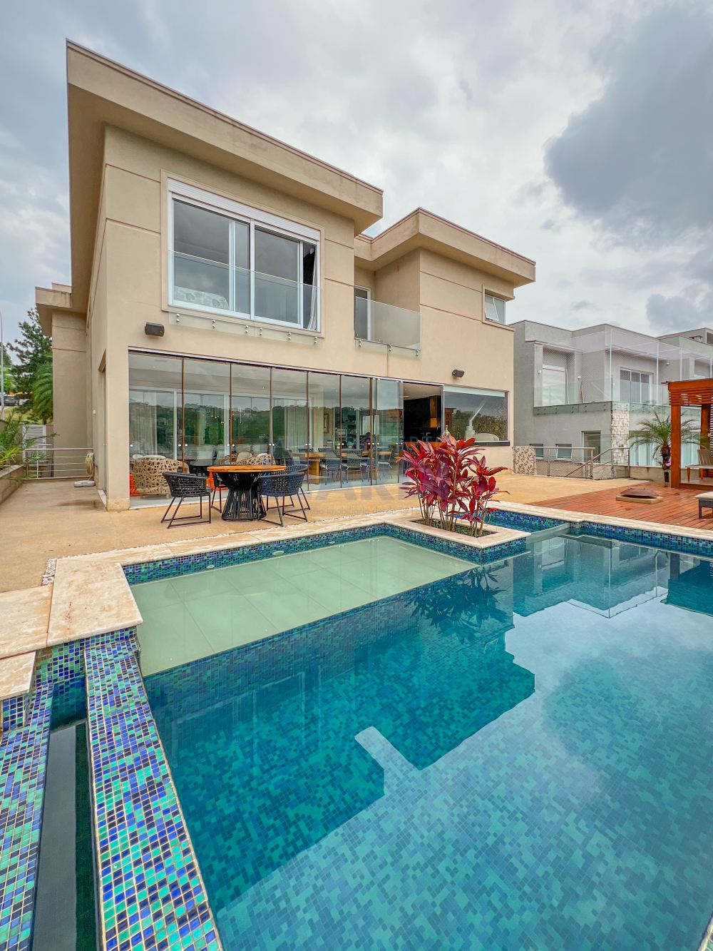 Área total: 565M² Área construída 700M² 4 Amplas suítes Suítes master com closet, Camarim, sacada e hidro Garagem coberta 4 vagas Salão de jogos Escritório. Home Theater Sala com pé direito duplo e lareira ecologia Gazebo Piscina com borda infinita e hidromassagem Suíte para Funcionário Espaço zem, com Hidromassagem, Sauna Depósitos Ampla cozinha com despensa e integrada com área gourmet Área gourmet com churrasqueira e mesa para 8 pessoas Sala de jantar para 10 pessoas