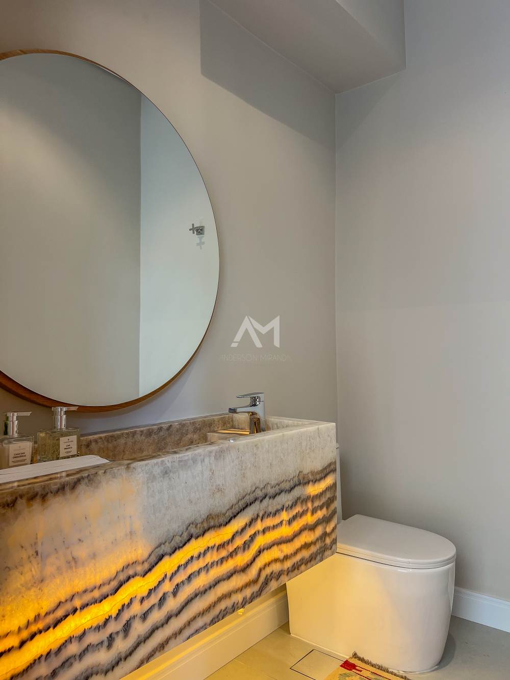 7 banheiros com bancadas em mármore e cubas esculpidas