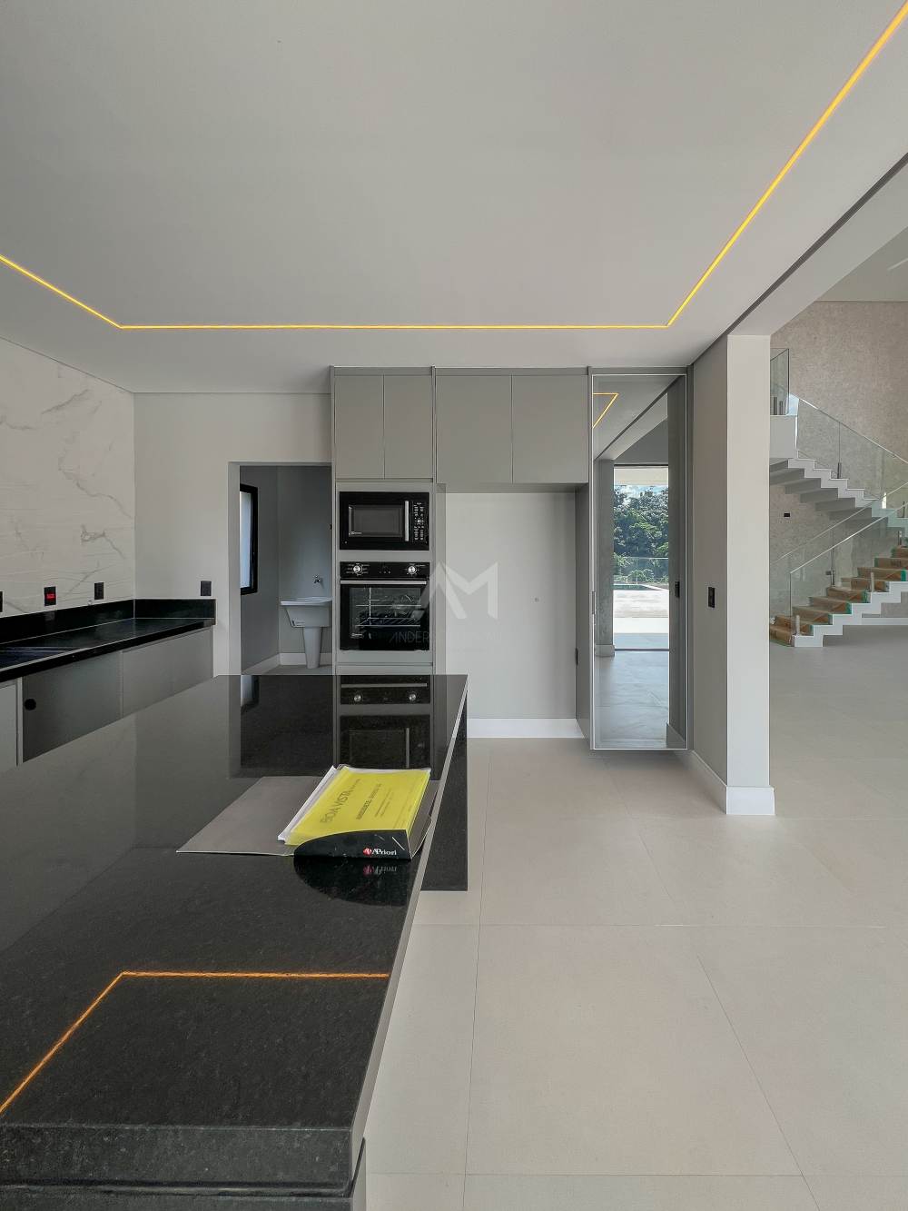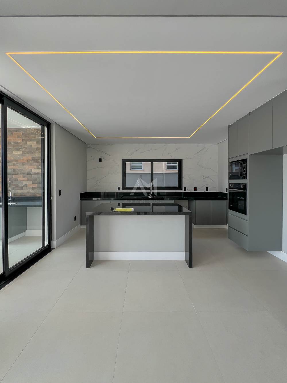 Living com pé direito duplo, cozinha integrada com o gourmet