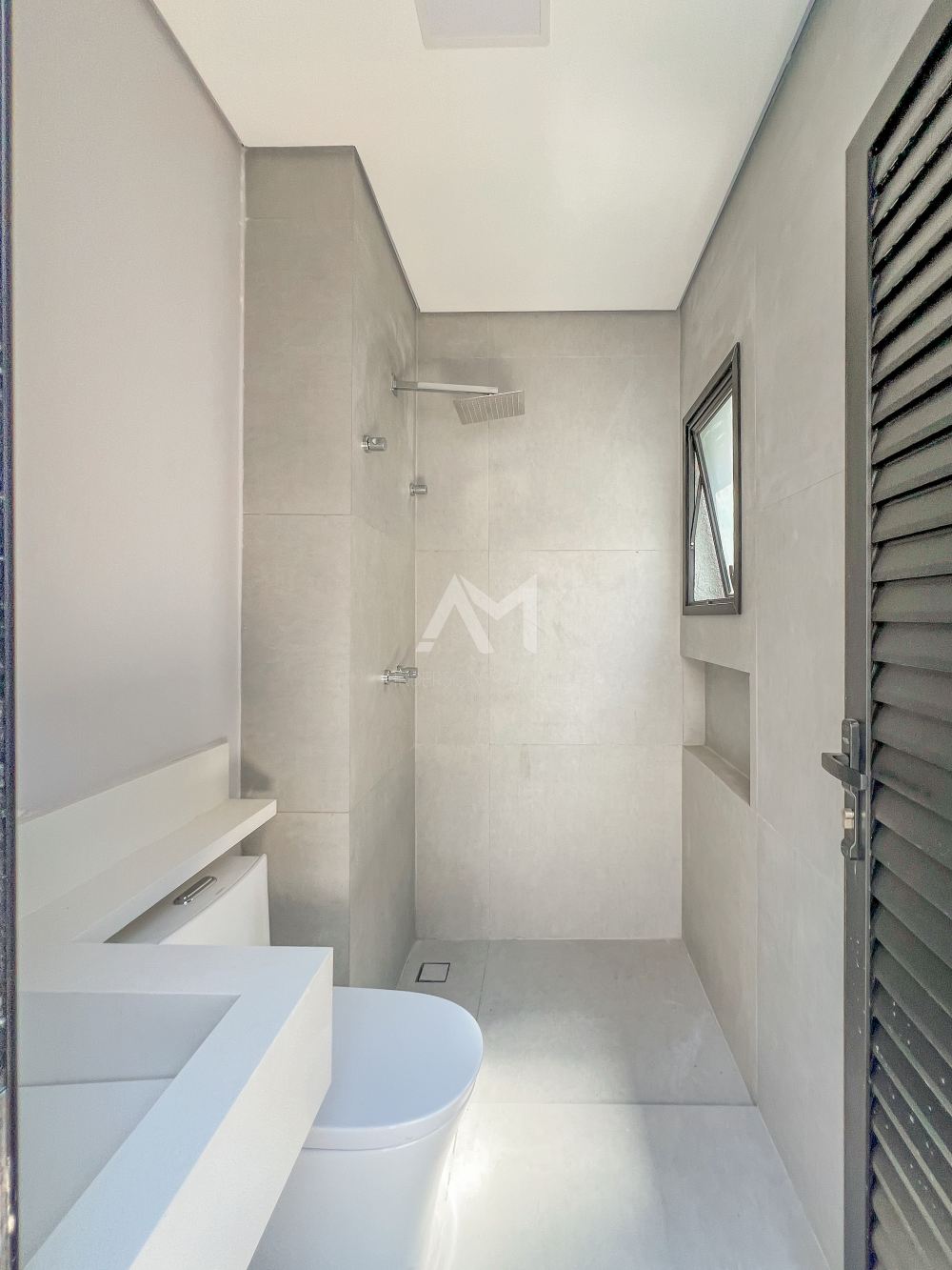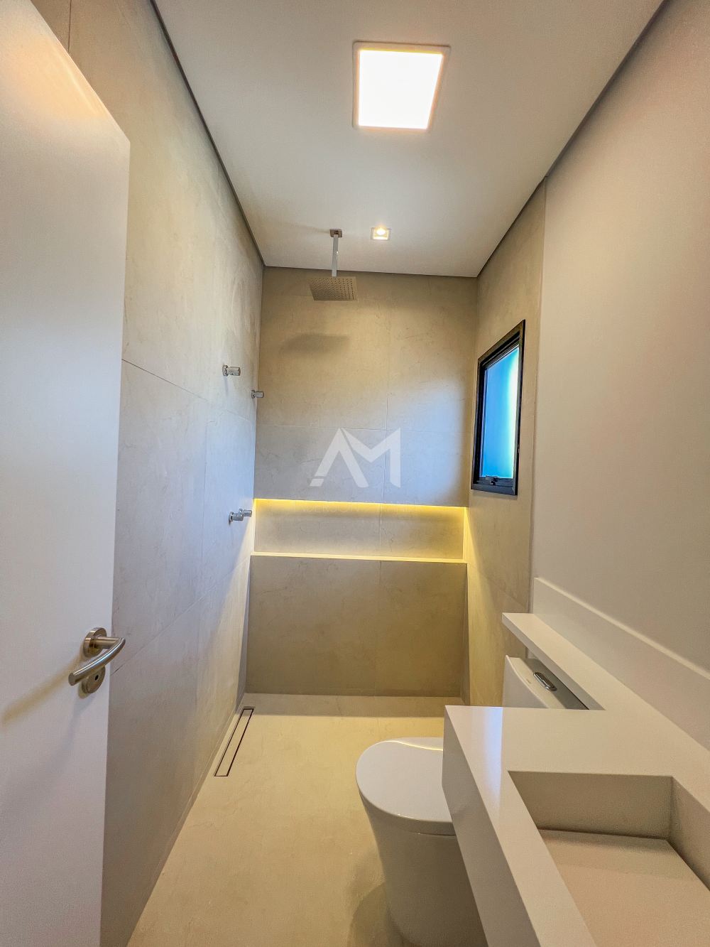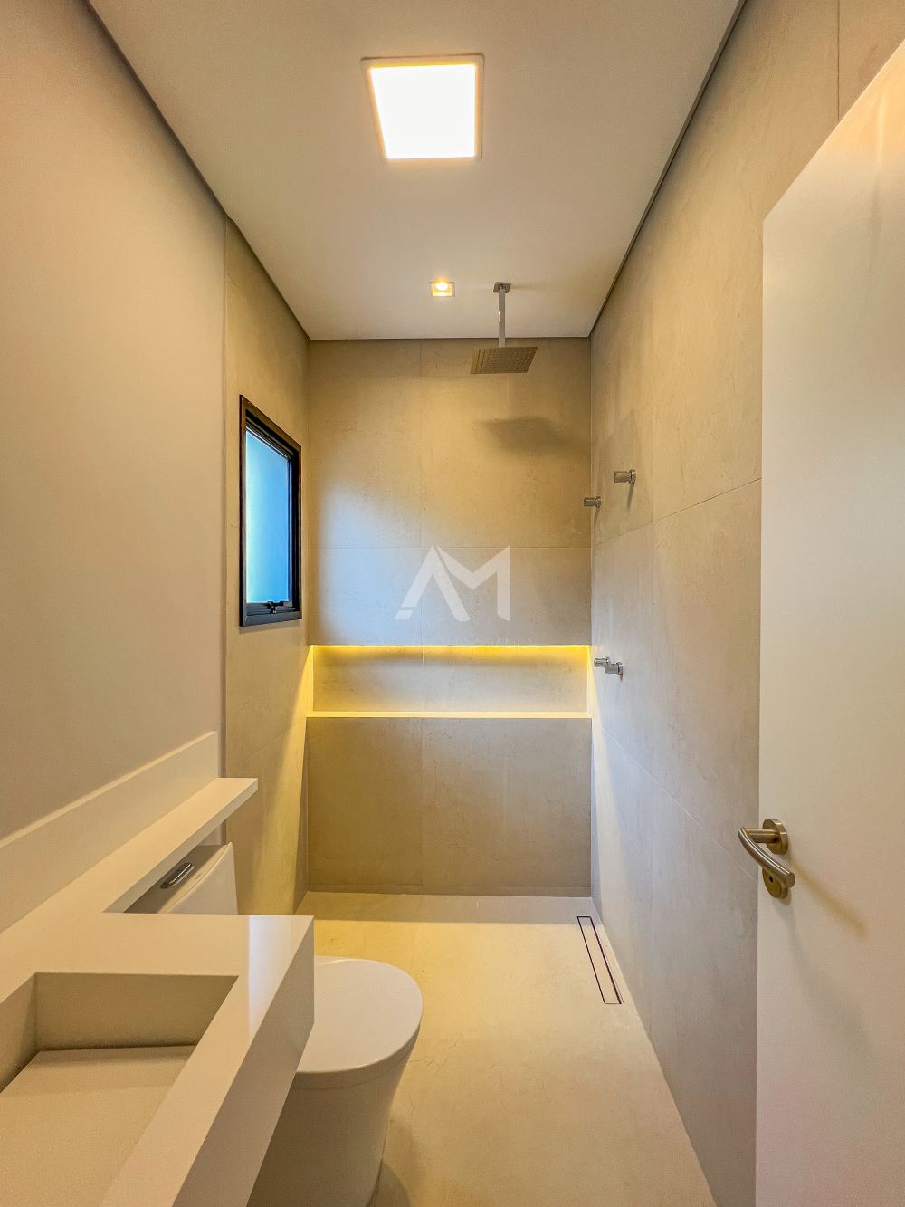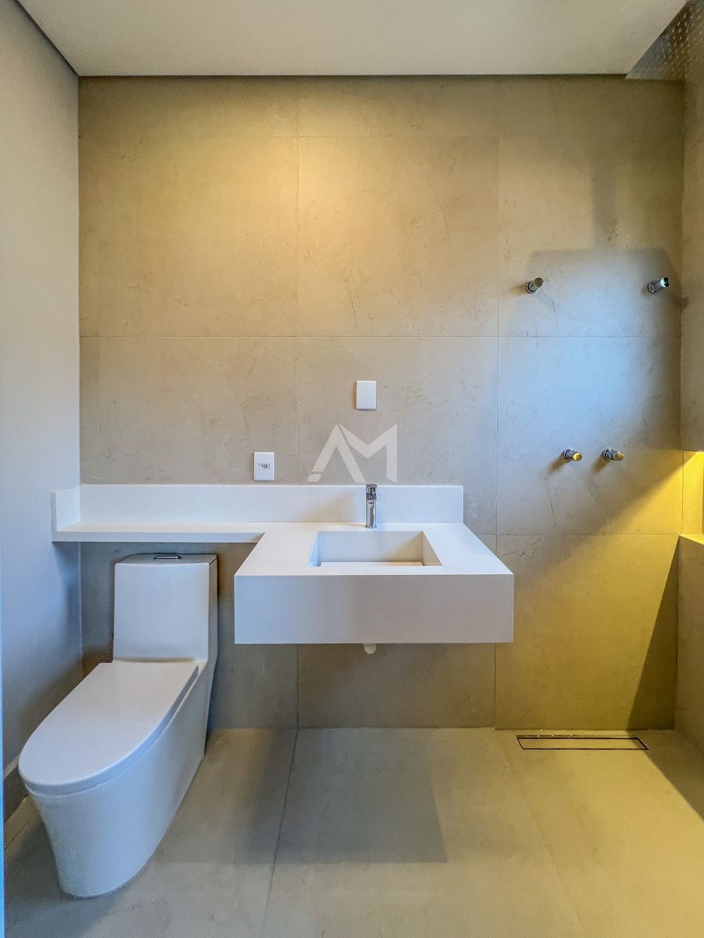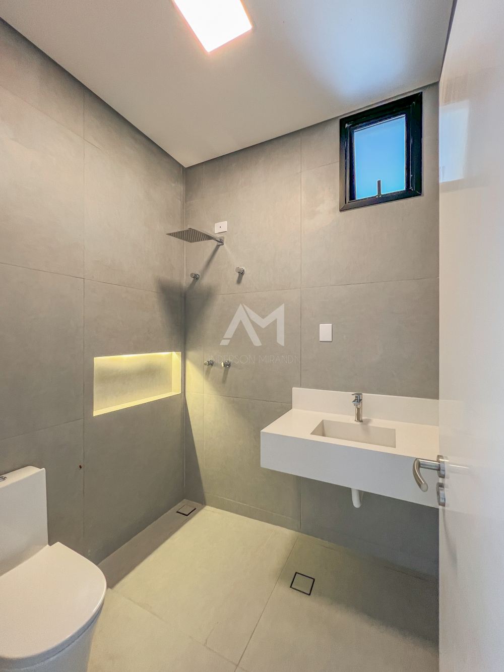Banheiro completo para atender o espaço de lazer externo..