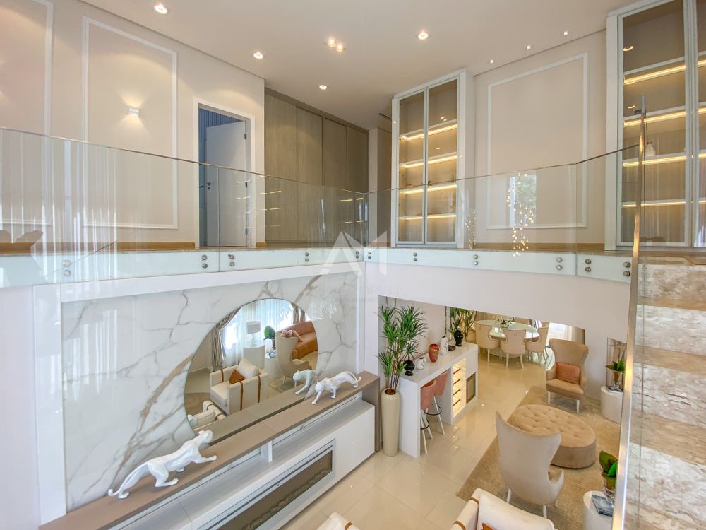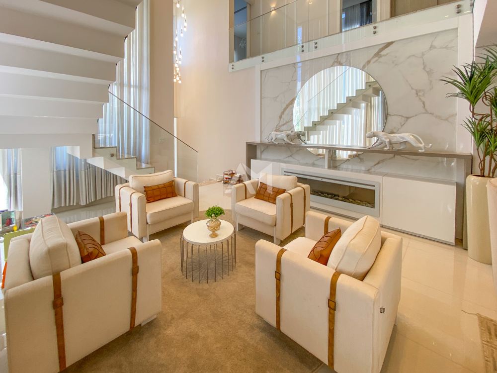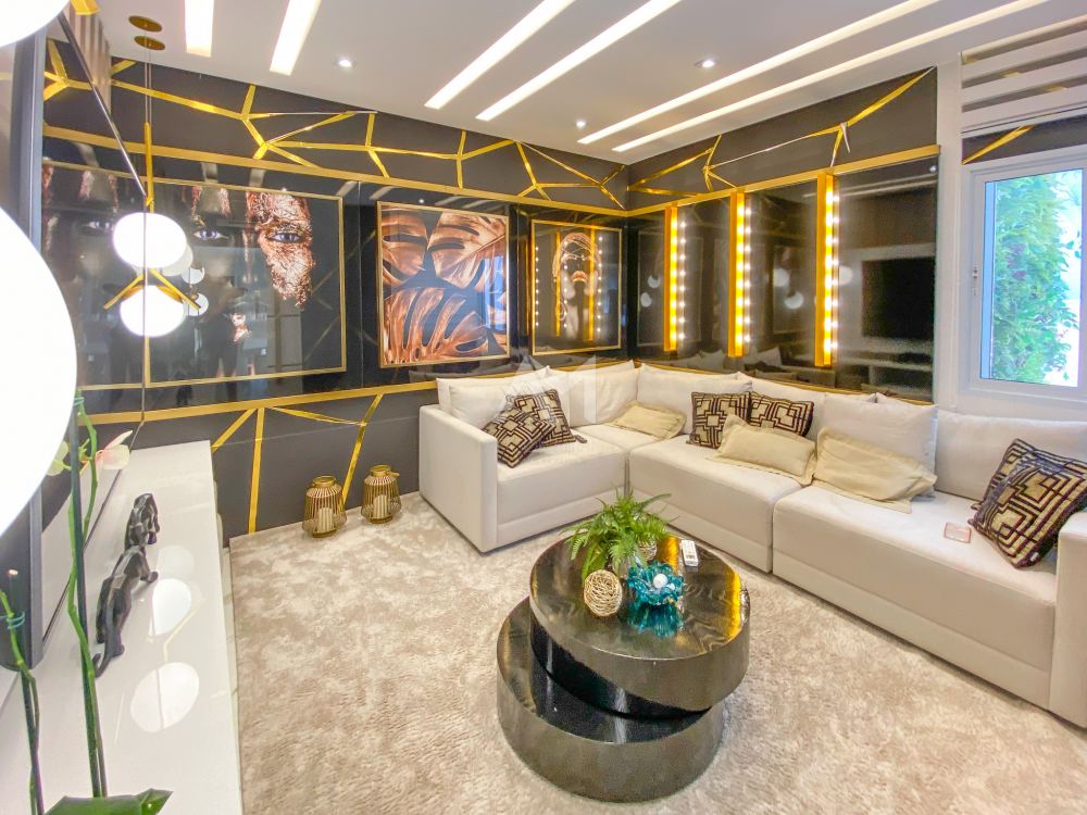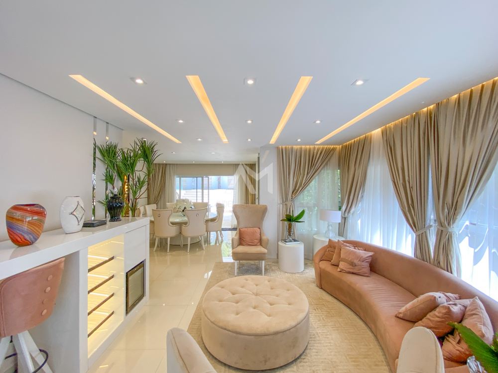 Sala de TV se destaca com luxuosos painéis de iluminação
