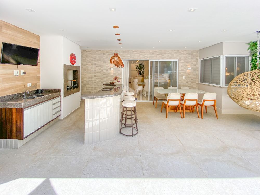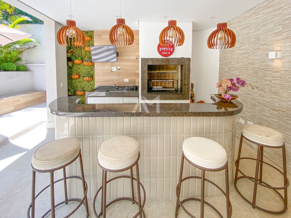 Cozinha, completa e versátil, inclui cooktop, ilha com exaustor e uma prática bancada de apoio
