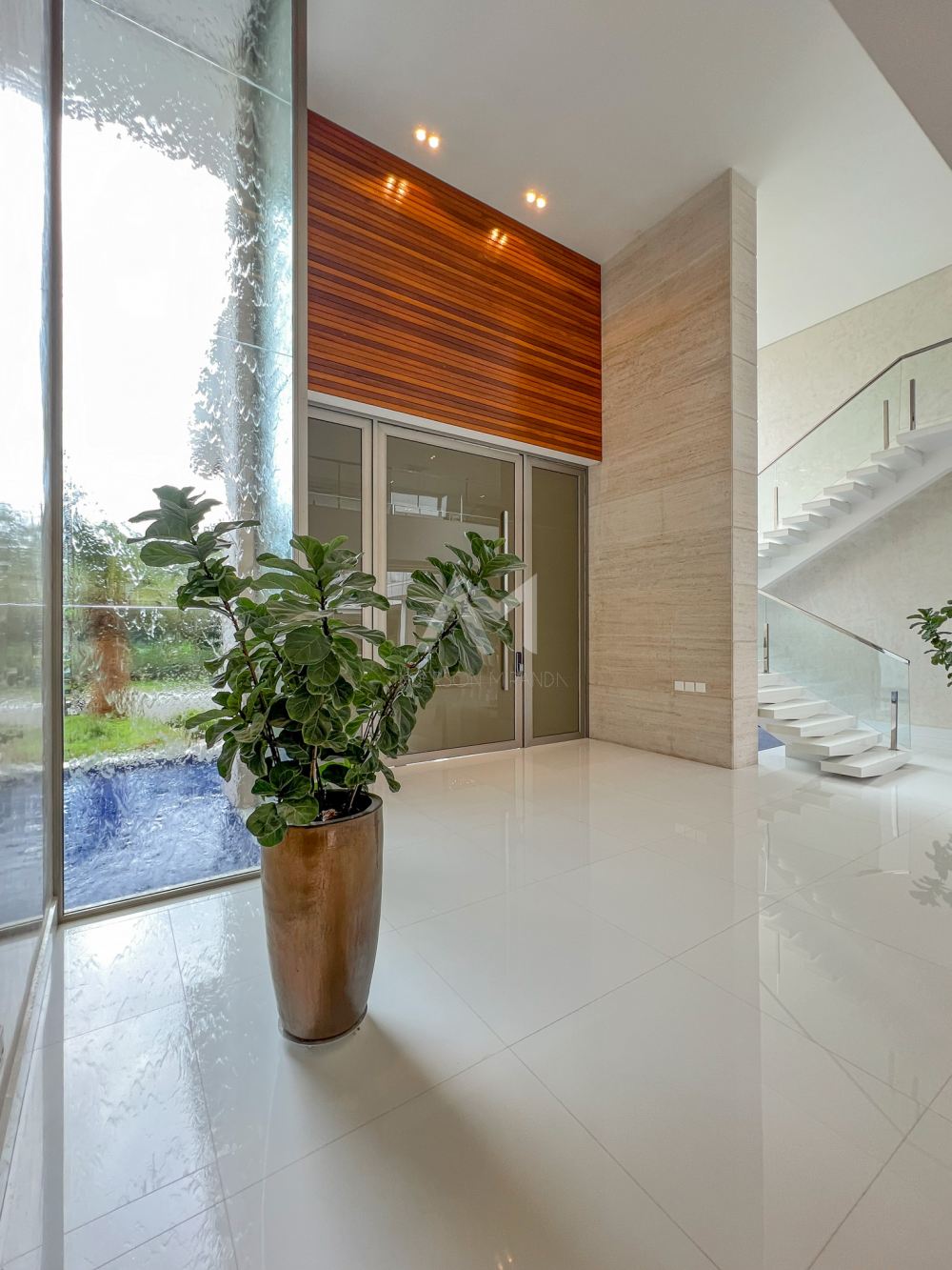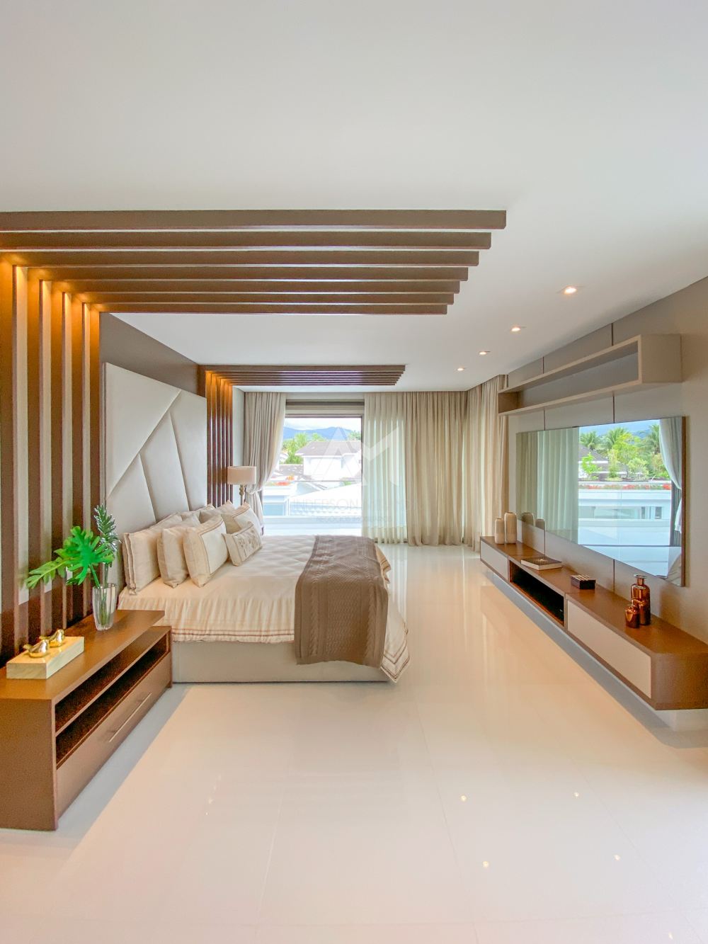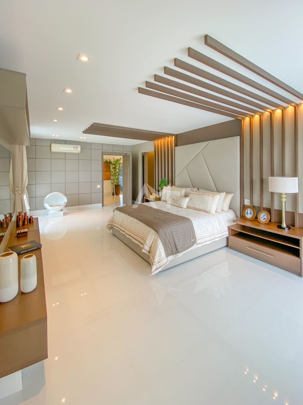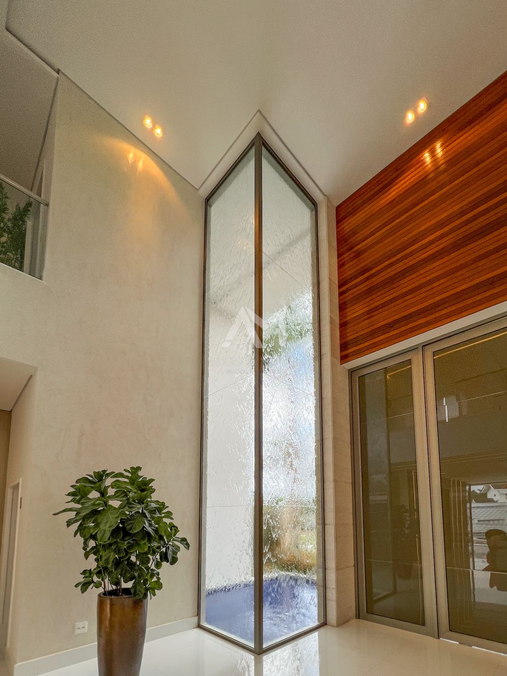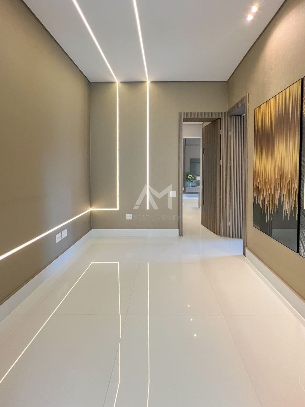 Ao entrar, você será recebido por um espetacular pé-direito duplo, ornamentado com cortinas em voil que dançam ao sabor do vento e lustres de cristais Swarovski feitos à mão, que espalham um brilho mágico por toda a sala.