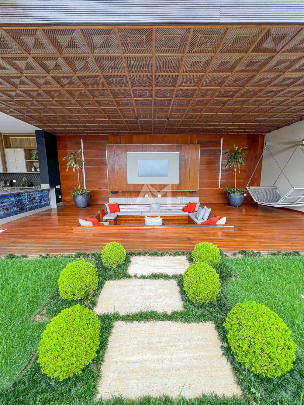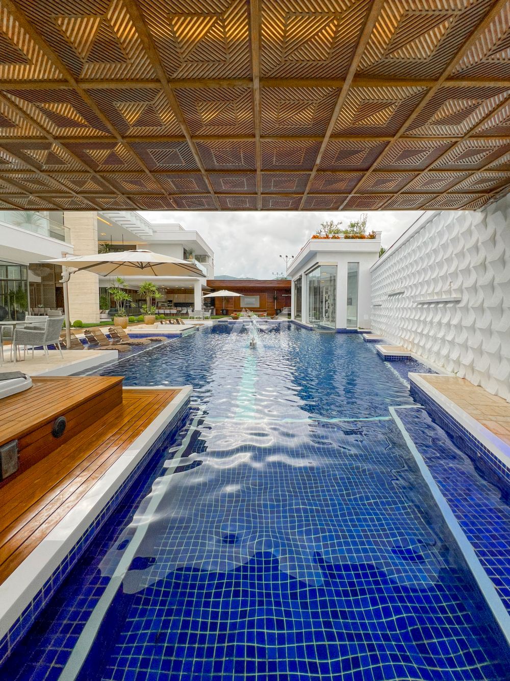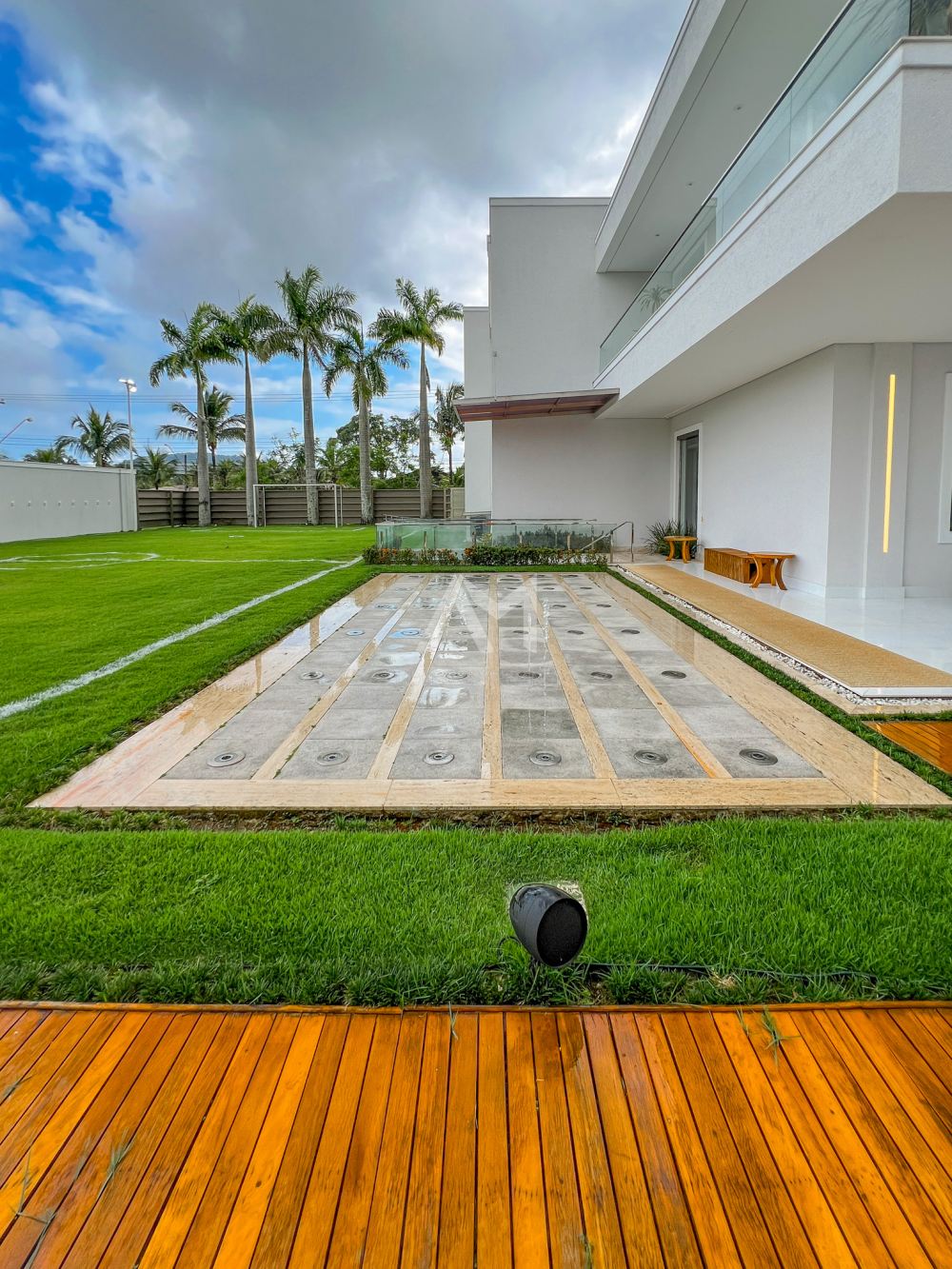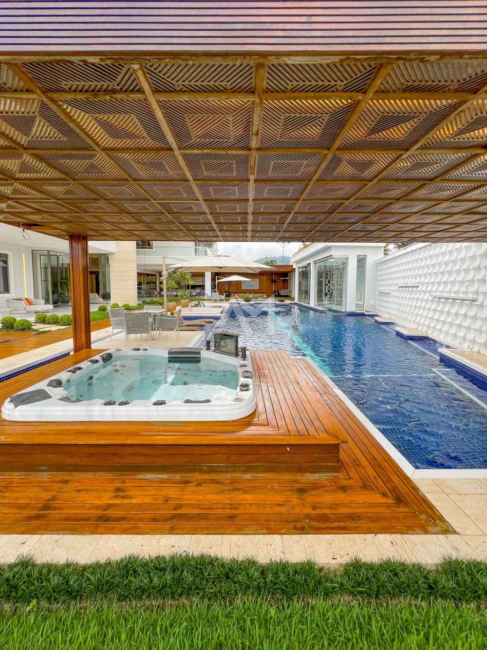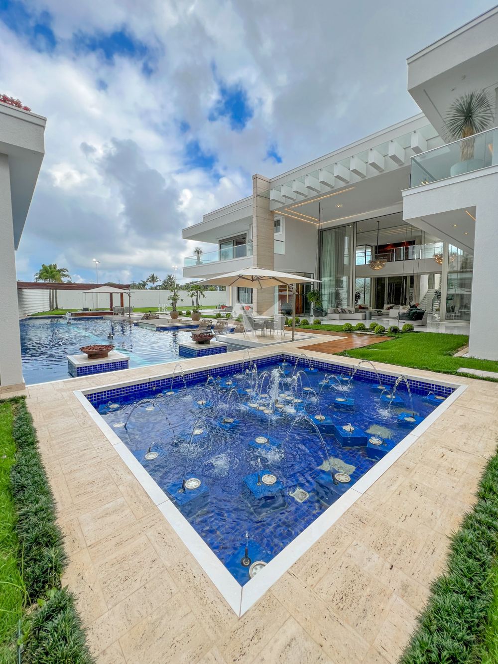 Quando o assunto é lazer ao ar livre, prepare-se para ser surpreendido. A piscina com design exclusivo e a jacuzzi sob o pergolado de madeira são apenas o começo. Chafarizes dispostos no jardim executam shows de águas dançantes com iluminação em LED, transportando você para os luxuosos hotéis de Las Vegas, sem sair de casa.