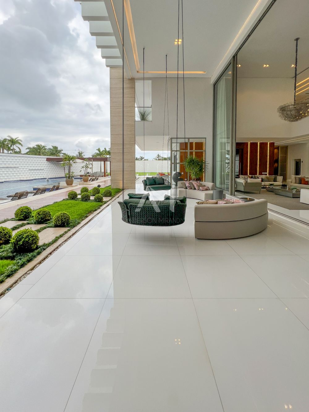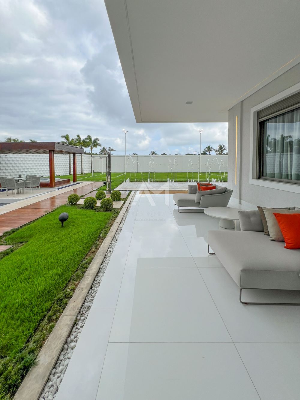 Deseja um momento de tranquilidade? Relaxe no magnífico lounge de inspiração oriental sob o amplo alpendre. Aqui, o "dolce far niente" torna-se uma arte, com estofados em tons neutros e uma charmosa daybed para descansar.