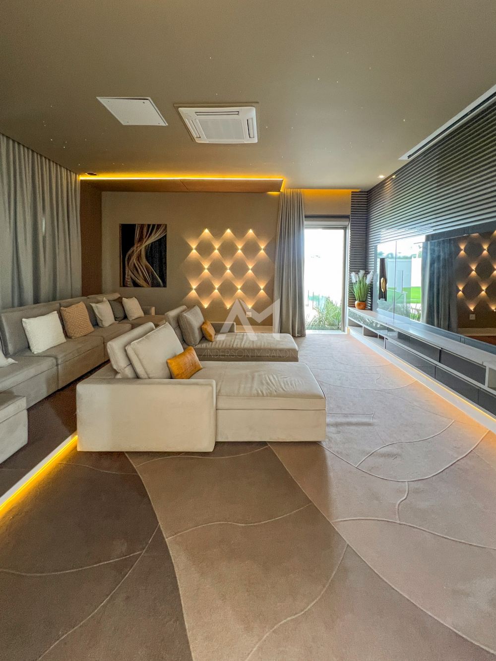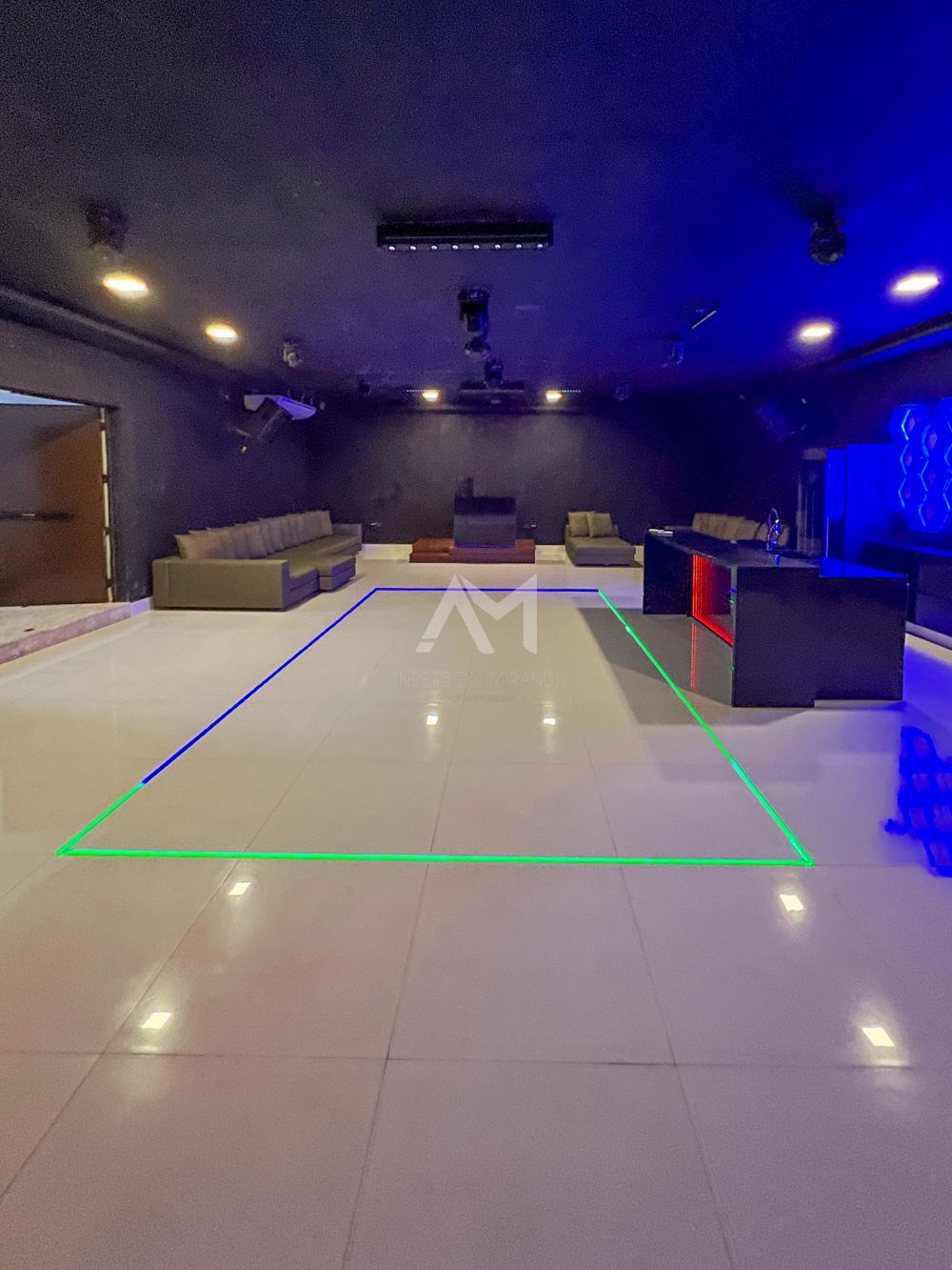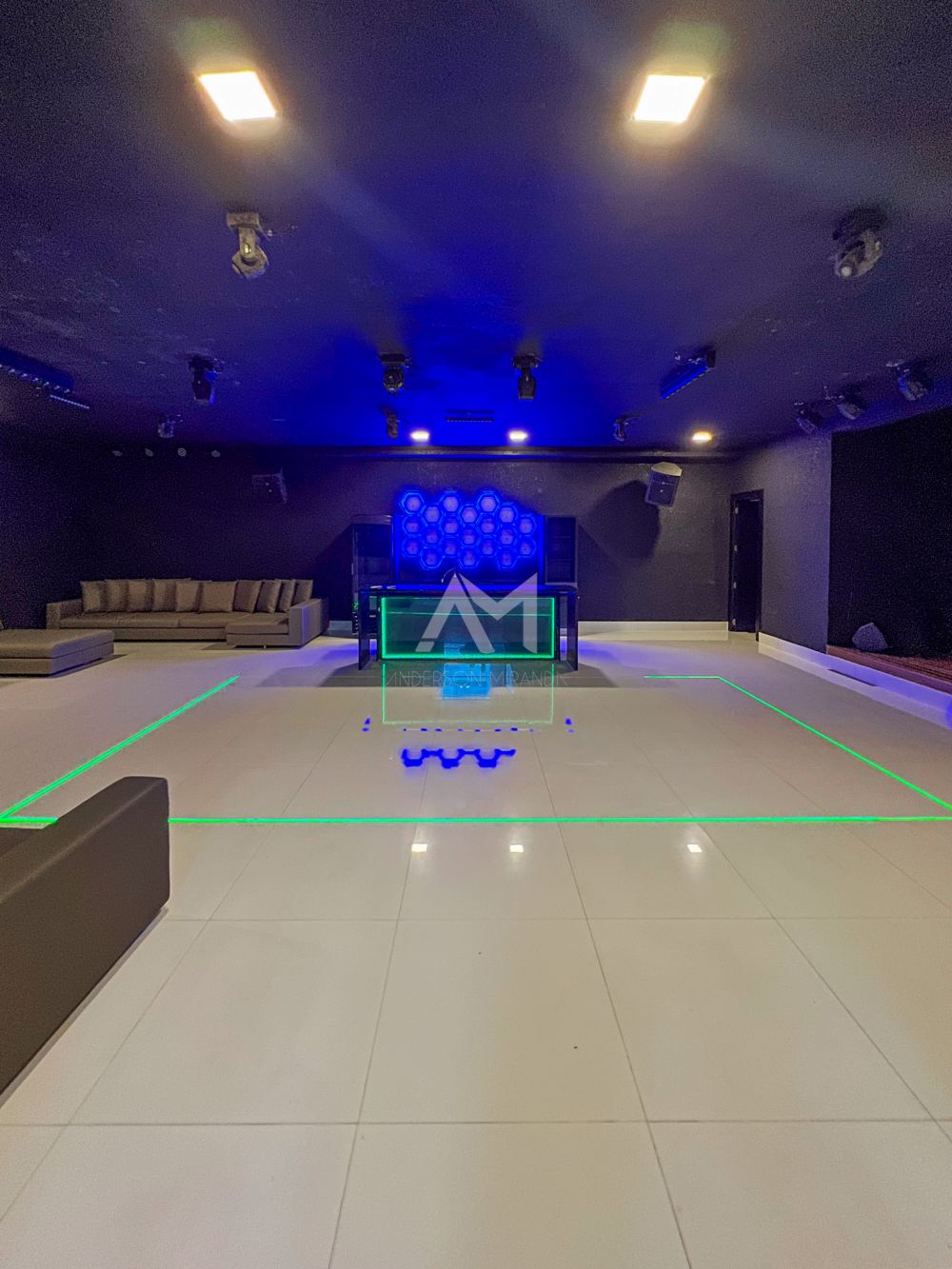 E, como um toque final de extravagância, um salão subterrâneo transforma-se em uma balada para até 70 pessoas, completa com sistema de som e iluminação especial.